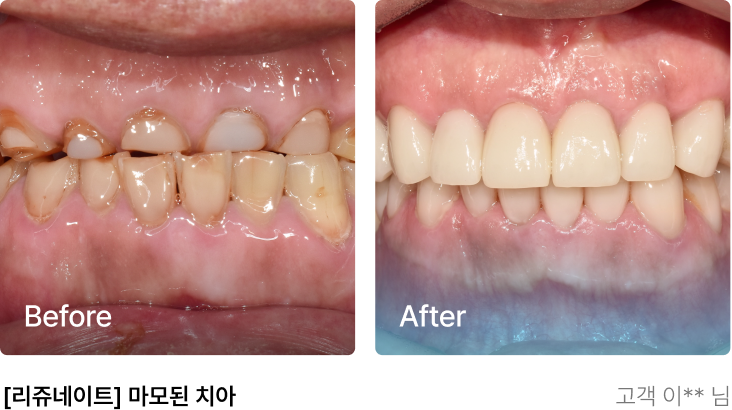 리쥬네이트는 교모나 마모된 법량질을 복원하는 치료로 무삭제 혹은 최소삭제로 법량질을 복원합니다.